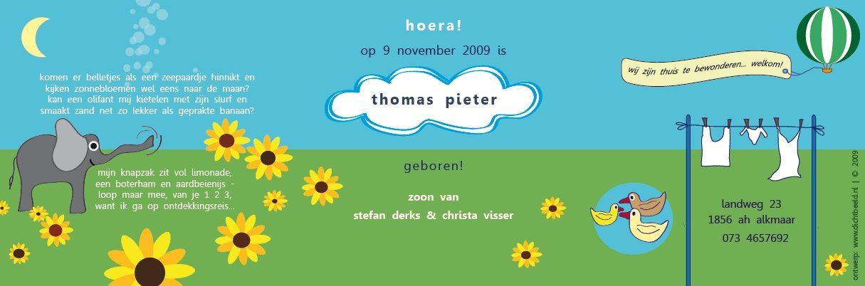 Vanuit een grote liefde voor de combinatie van tekst en beeld heb ik in de loop der jaren voor diverse opdrachtgevers allerlei aansprekende producten ontworpen, zoals geboortekaartjes, logo's, flyers, ansichtkaarten, memoblokjes, verhuisberichten, spellen en boekenleggers. Hieronder staan enkele voorbeelden voor een globale indruk. (Meer boekenleggers volgen later).